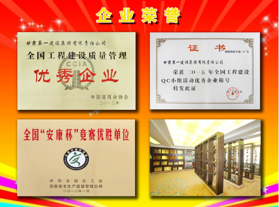 公司对外经营先后拓展到国内17个省(市、区)和海外7个国家,承建的工程先后荣获国际墨丘利金像奖1项,国家工程质量“鲁班奖”2项,国家优质工程银质奖4项,中国电力优质工程奖8项,甘肃省“飞天金奖”7项,“飞天奖”等省市级工程质量奖40余项。公司先后荣获全国优秀施工企业等国家级荣誉20多项,甘肃省五星级诚信企业等省级荣誉40余项。2013年荣获甘肃省科技进步一等奖1项。