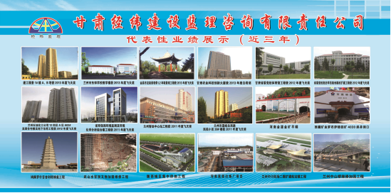具有代表性的市政项目有:兰州市城区污水全收集管网建设工程项目、兰州新区道路工程、金昌市龙泉景观带环境工程(L2环境景观工程)、陇南市滨江生态公园工程监理;