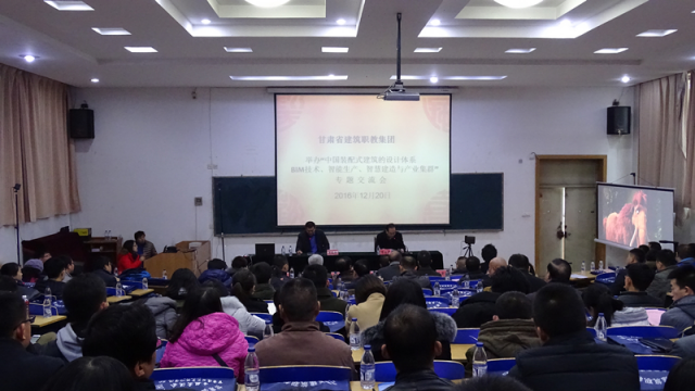 12月20日,由甘肃省建筑职教集团举办的“中国装配式建筑的设计体系、BIM技术、智能生产、智慧建造与产业集群”专题交流会在甘肃建筑职业技术学院召开。来自北京智慧云建建筑科技股份有限公司总经理李金鹏,杭州万霆科技股份公司副总裁康乐,兰州博仁贸易中心董事长姚成杰等42个单位负责人参加,学院部分老师参加。学院教务处处长李君宏主持大会。