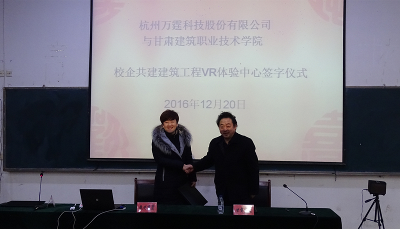 首先,北京智慧云建建筑科技股份有限公司总经理李金鹏从设计体系、BIM技术、智能生产、智慧建造、产业集群等5个方面做了专题讲座。甘肃建院大学生创新创业中心产品负责人金海瑞介绍了极米无屏超级电视及成者科技智能扫描仪,杭州万霆科技股份公司副总裁康乐做了VR技术报告。此外,该公司与学院院长田树涛签订了校企共建建筑工程VR体验中心的协议。